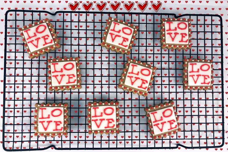 fluted square for the LOVE stamp and the word j-o-y, where the cookie itself is the message